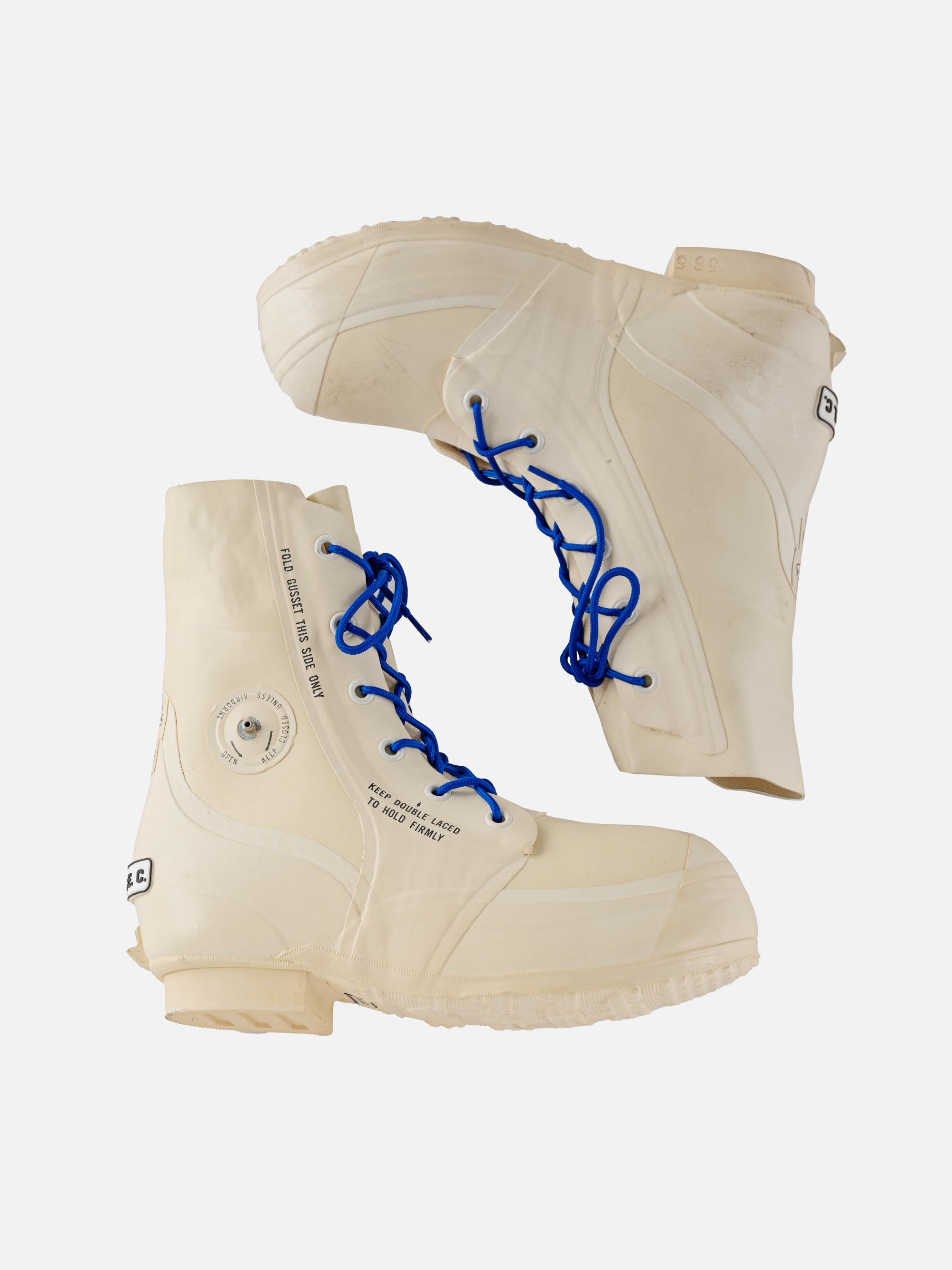 The origin of B.A.S.E.C.’s readymade collection, these Army-issued Extreme Cold Vapor Barrier Boots are vacuum sealed and can withstand temperatures as low as −60 °F.